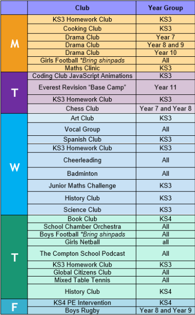 We are excited to provide an extensive selection of extra-curricular clubs, fostering creativity and inclusion. Explore the diverse options below, there's something for everyone! 🌟 For more information about each club, look out for the posters in school!— The Compton School (@thecompton) Nov 28, 2025