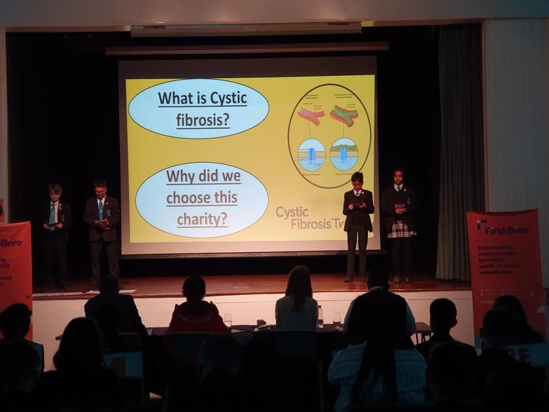 After months of hard work and preparation, Friday 26th May saw Year 8 students at The Compton School being recognised for social action in their local community and their collaborative work with myriad Barnet charities at the First Give Final. Councillor Nagus Narenthira, the Mayor for the London Borough of Barnet, was invited to be a part of the prestigious judging panel which also included the two Heads of School, Andrew Hammond and Louise Ismail, as well as Head Student, Jaydon Rhule. The judging panel watched eight groups of students present their social actions and research in a bid to win £1000 for the charity of their choice. They found the judging challenging as the standard was so high. Councillor Narenthira commented: “I commend the school for preparing the students so well; each group showcased admirable skills and went to a lot of effort.” The winning team was 8C who were fundraising for Cystic Fibrosis Trust, a cause close to their heart as one member of the tutor group has the condition.